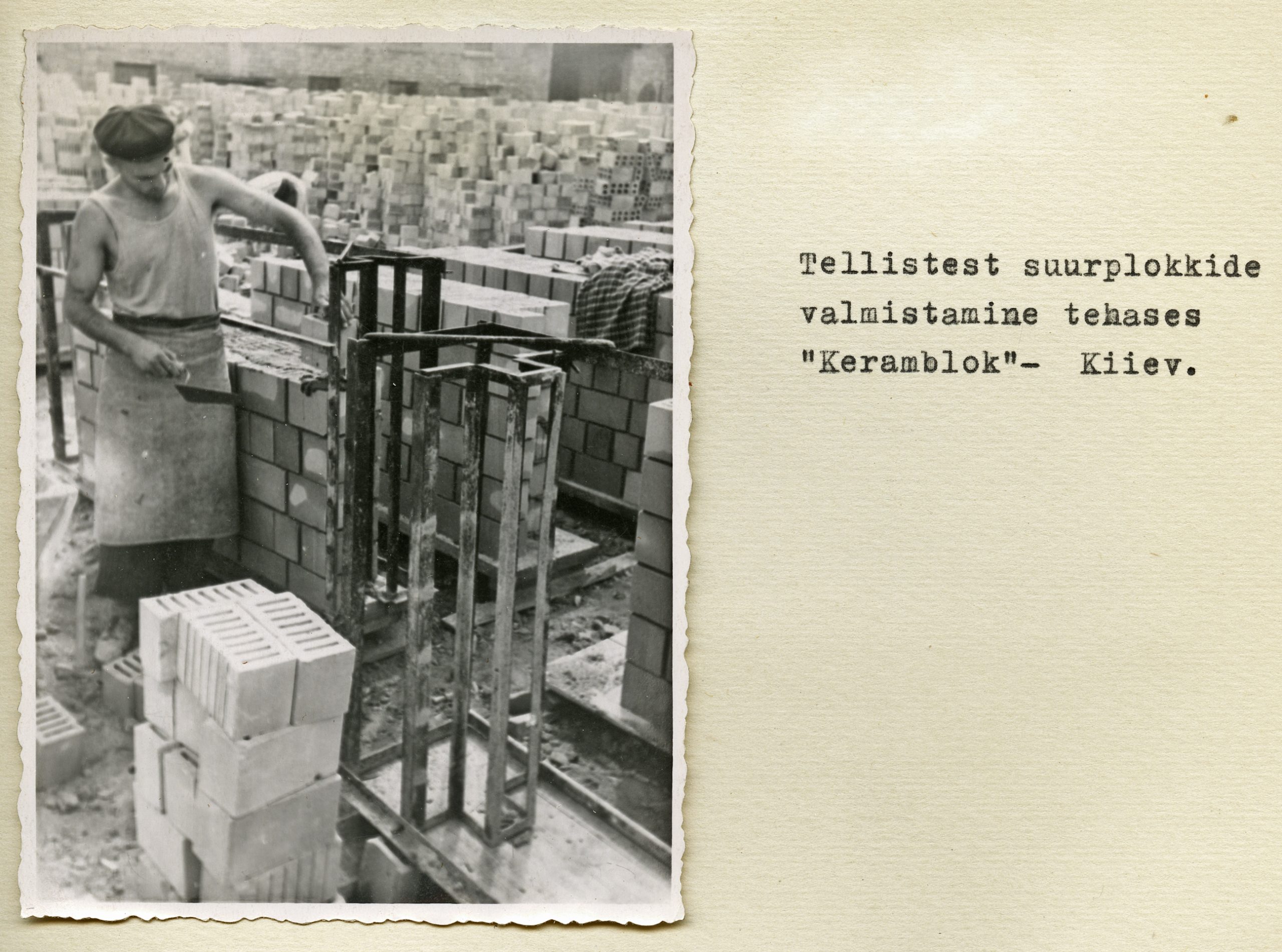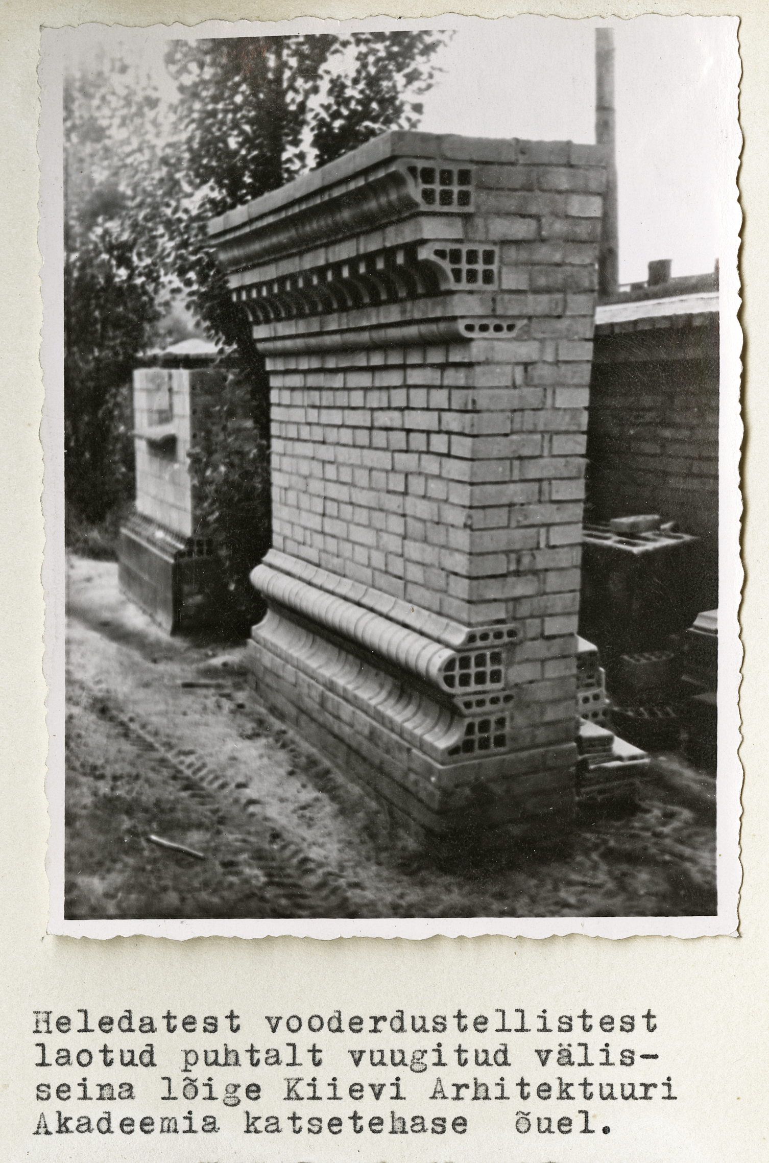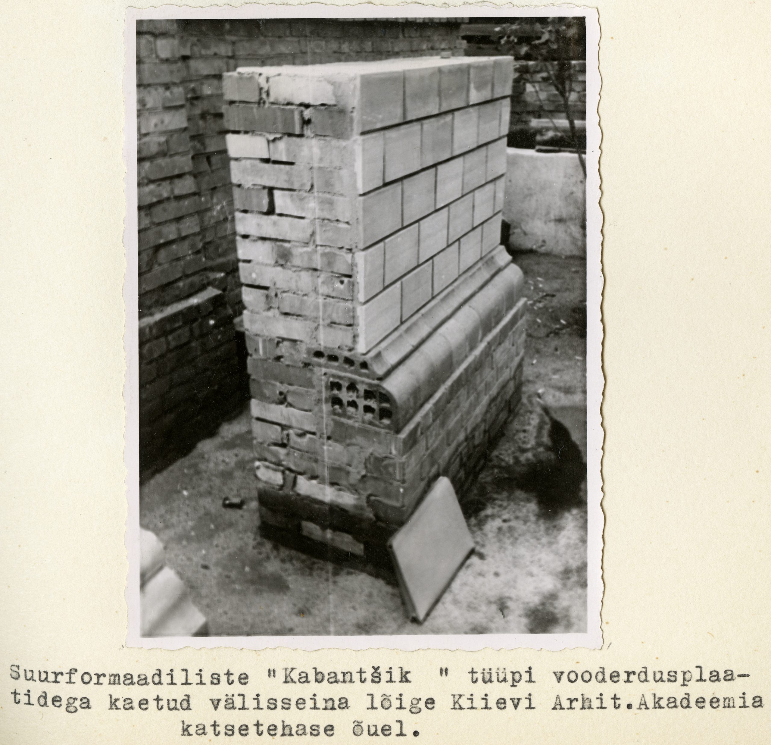 Mart Pordi loomingulise komandeeringu eesmärk (1956) oli uurida, kas intensiivistunud masselamuehituse alal oleks võimalik tõsta tööstusliku ehitusviisi kvaliteeti ja kiirust. Kuuajalise reisi käigus läbis ta erinevaid linnu teekonnal Tallinnast Ukrainasse ja tagasi: Riia, Kaunas, Vilnius, Lvov, Ušgorod, Kiiev. Komandeeringu aruandes võtab arhitekt kokku, et näiteks Lätis ja Leedus on masselamuehitusega seotud ehitusvõtted siinsega üsna sarnased, aga omaette tähelepanu väärivad hoonete välisfassaadide juures kasutatud katteplaadid, mida toodeti Kiievis. Aruande üksikasjaliku pildimaterjali koguski ta just sealt. Iseäranis vaimustus ta “kabantšiku” tüüpi kohalikust savist valmistatud voodriplaatidest, mis töötati välja Kiievi Arhitektuuriakadeemias. “Kabantšikud” olid heledad plaadid, osaliselt ka õõnsad, mis paigaldati müüritisele senistest väiksemate ripptellingute abil. Arhitekt juba teadis kirjutada, et Eestis on võimalik selle tootmiseks vajaminevat valget savi hankida Joosu karjäärist Võrumaal. Reisi käigus külastas ta keraamiliste vooderdusplaatide tehaseid “Keramik” ja “Keramblok” ning viimase punase saviga kaevandust. Ukrainlased, kellel on pikad traditsioonid savitööstuse ja ehituskeraamika alal, tutvustasid talle ka Kiievi Arhitektuuriakadeemia ehitusjärgus olevat keraamika katsetehast, kus valmisid uued ehituses kasutatavad prototüübid. Aruandes tõi ta välja, et teadmisi jagati kahepoolselt. Kiievi, Minski, Vilniuse ja Riia ehitajad olid tutvunud Tallinnas kasutatava terrassiit-pesukrohvi katmisviisiga ja kiitnud selle mooduse uuenduslikkust. Tekst: Sandra Mälk