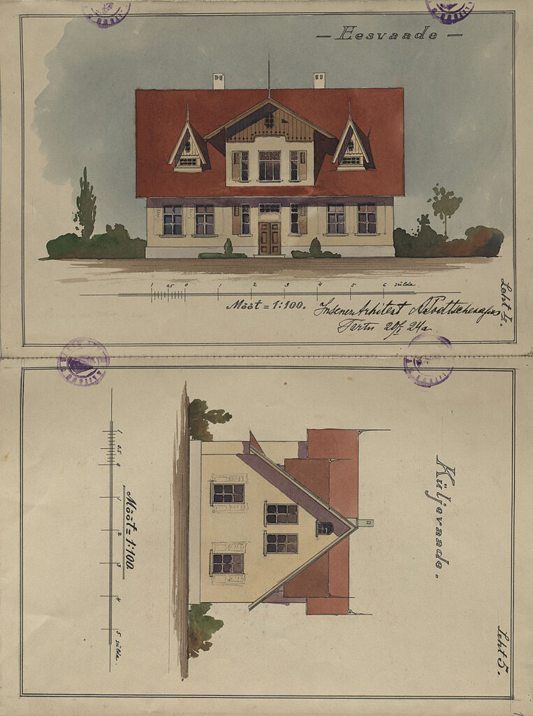 Alustagem Eesti rahvusromantismi suurkujust Karl Burman vanemast (1882–1965). Karl Burman oli loominguline isiksus, kirglik akvarellist, kes armastas maalida linnavaateid, käis mitmes kunstikoolis ning asus arhitektuuri õppima Peterburi Kunstiakadeemiasse (1902–1909). Tallinnasse tulles asutas ta koos kolleegi Artur Pernaga oma arhitektuuribüroo. Arhitektide Ühingu loomise hetkeks 1921. aastal oli ta teenekas projekteerija oma äratuntava stiiliga, kes pidas tähtsaks ehituses seost loodusega ja kohalike materjalide kasutust. Burmanil oli ette näidata Kalevi jahtklubi Pirital (1911–1912), Eesti paviljon Helsingi messil (1920) ja nagu ka sajandi alguses jõudsalt kasvav linn väga vajas – mitmed suurlinna väärilised kivist üürimajad Tallinna vanalinnas ja kesklinnas. Burmani nimi kõlas ka eratellijate seas, kellest fotograaf Jaan Riet 1913. aastal nüüdseks Burmani ühe tuntuima elamu tellis. Viljandis asuvas elamu-ateljees paistab silma arhitekti romantiline käekiri, mida rõhutas kõrvuti olek Posti tänava klassikalisemate hoonetega. Hoone on juugendlikult sundimatu planeeringuga: ateljeeruumid asusid alumisel ning fotolaborid ja elutoad mansardkorrusel. Viiluvälja kaunistab A. Perna & K. Burmani arhitektuuribüroo üks lemmikkaunistusi – päikesemotiiv. Siin näha olevad sinitrükis lehed on originaaljoonise negatiivid, mida koloreeriti punase pliiatsiga. Tema hilisemasse loomingusse kuuluvad 1920. aastatel projekteeritud silmapaistvad hooned nagu Eesti Panga Viljandi osakonna (1926, hävinud) ja Tartu osakonna hoone (1935, koos Arnold Matteusega), hulgaliselt kivist linnamaju ning Saku aedlinna planeering (koos A. Pernaga). Varem on põhjalikumalt liidust ja selle asutajatest kirjutanud Mait Väljas: https://www.sirp.ee/s1-artiklid/arhitektuur/arhitektid-juubeldavad/ Tekst: Sandra Mälk